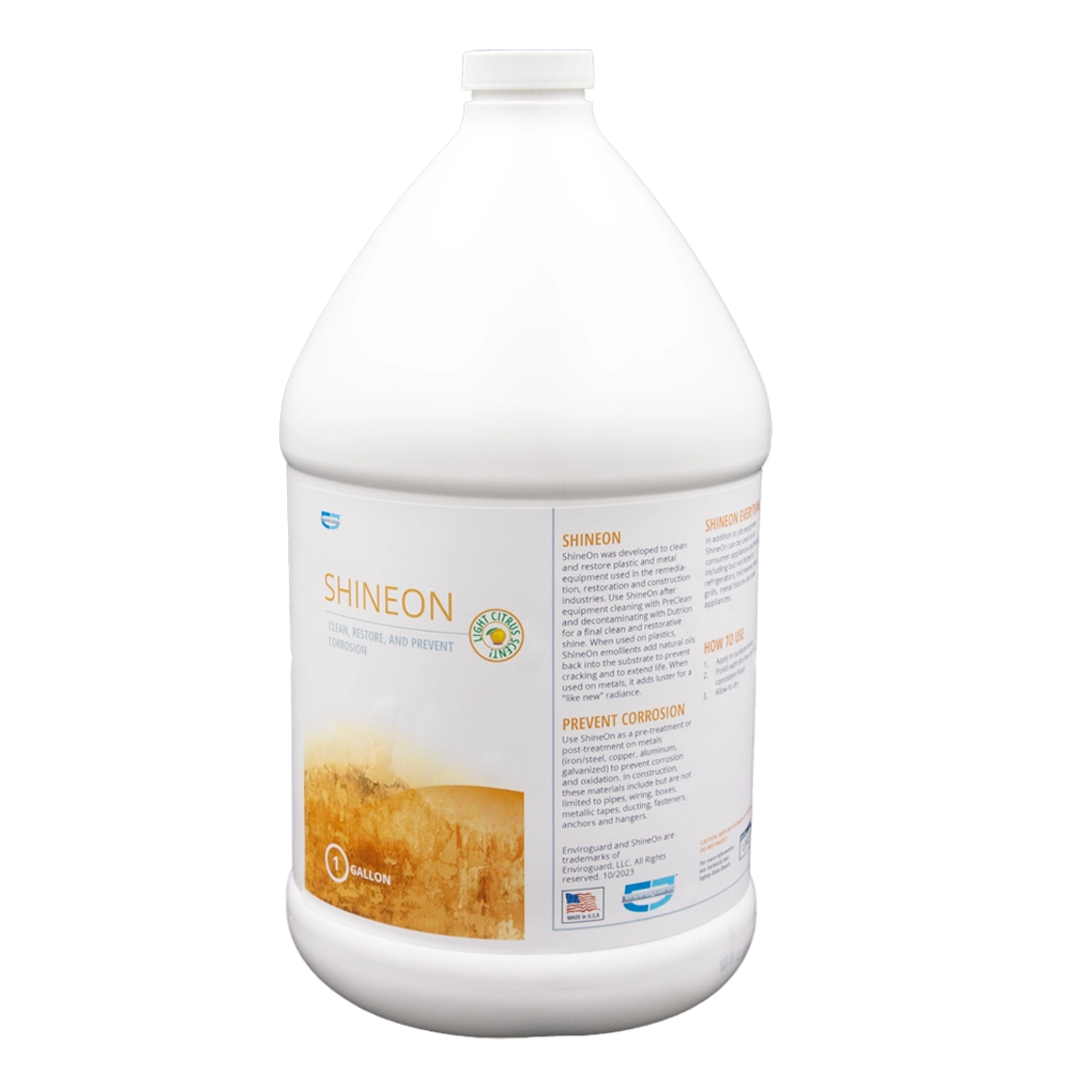 ShineOn is compatible with all metal and plastic surfaces. ShineOn is compatible with all Enviroguard Equipment. ShineOn is compatible with all Enviroguard cleaners, stain removers, coatings, and sealers.