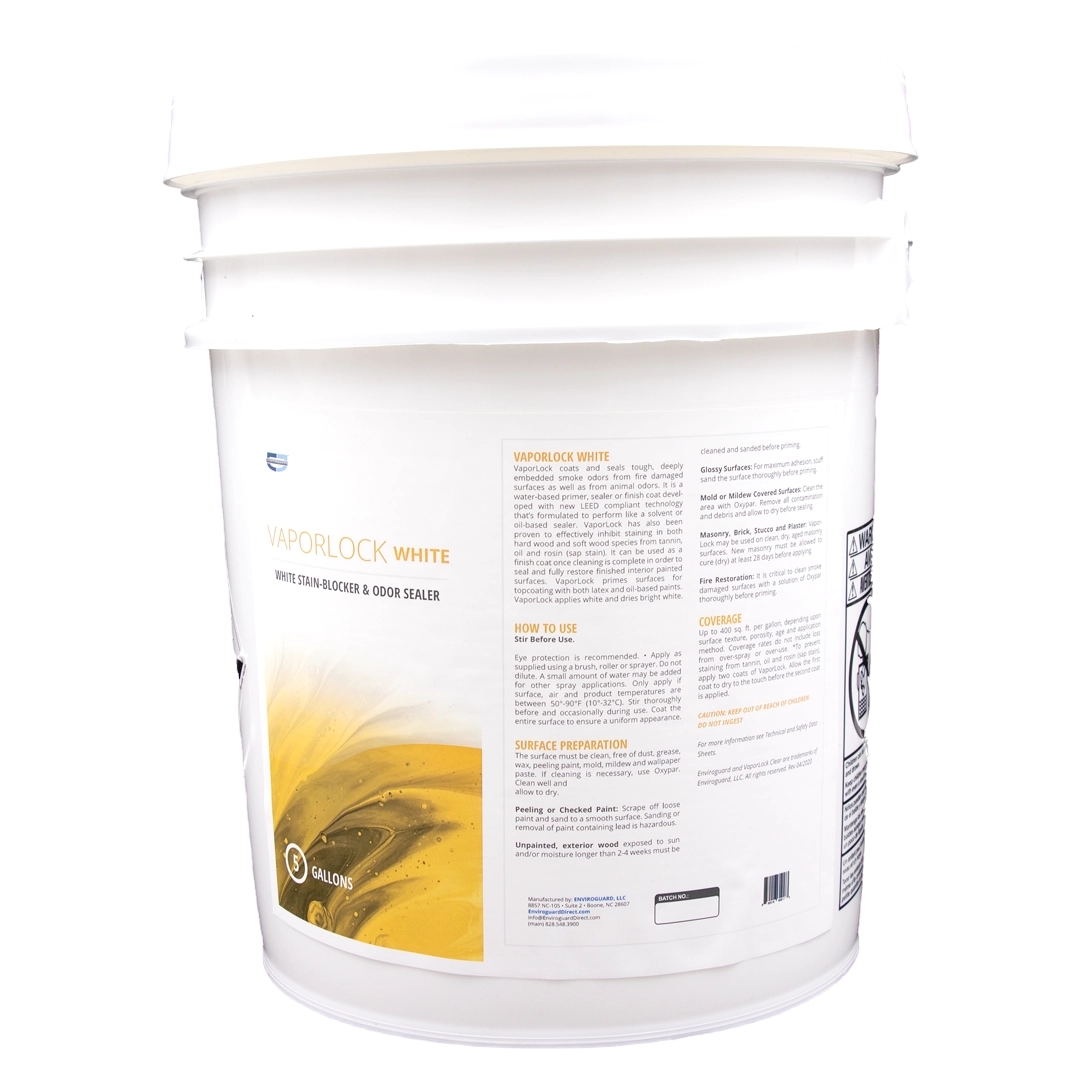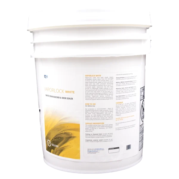 ⚪ VaporLock White: An opaque white primer and stain blocker, VaporLock White is ideal for sealing smoke odors and covering alligatoring or stains on fire damaged surfaces. Compatible with both latex and oil based paints, it can also be tinted and used as a finish coat.